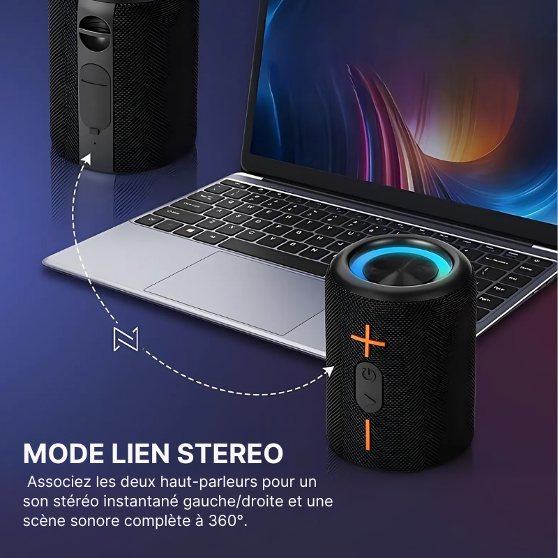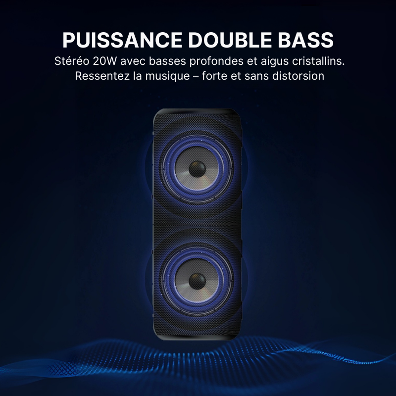 Des drivers dynamiques doubles + technologie de renforcement des basses = un son qui remplit la pièce avec une vraie profondeur. Petit haut-parleur, son massif.